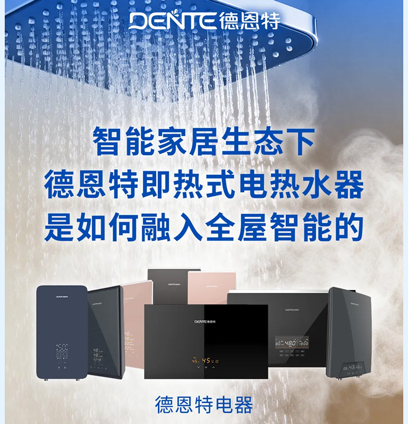 當智能家居從概念走向普及,作為家庭高頻使用的核心設備,電熱水器已不僅是熱水供應源,更是全屋智能生態(tài)的重要一環(huán)。德恩特,作為快熱式電熱水器國家標準起草單位,憑借全維度的智能設計,讓熱水器真正成為懂你的智慧伙伴。