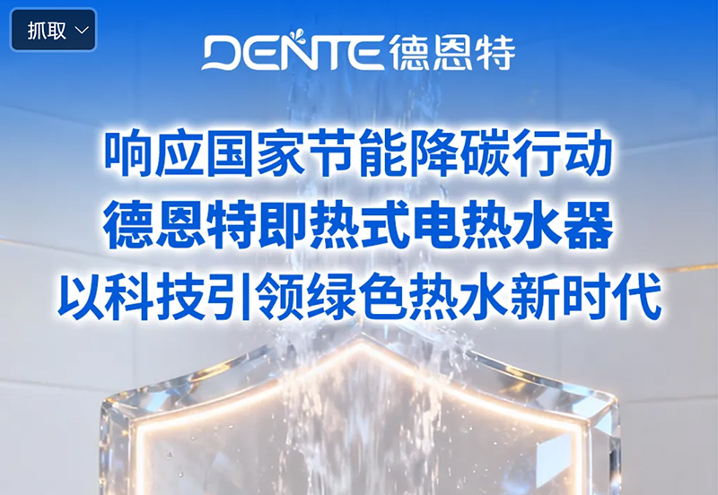 國務院印發(fā)《2024—2025年節(jié)能降碳行動方案》(國發(fā)〔2024〕12號),明確提出要加快重點用能設備能效提升,推動綠色消費與低碳生活方式的普及。作為家庭日常能源消耗的重要設備,電熱水器的能效水平直接影響全社會節(jié)能減排的成效。在政策引導與市場需求的雙重驅動下,傳統(tǒng)儲水式電熱水器因待機保溫能耗高、熱效率低等問題,正面臨全面升級的挑戰(zhàn)。 德恩特即熱式電熱水器憑借前瞻性的技術布局與系統(tǒng)化的產品設計,精準契合國家綠色發(fā)展戰(zhàn)略,成為推動行業(yè)低碳轉型的重要力量,助力“雙碳”目標在民生領域的落地實踐。